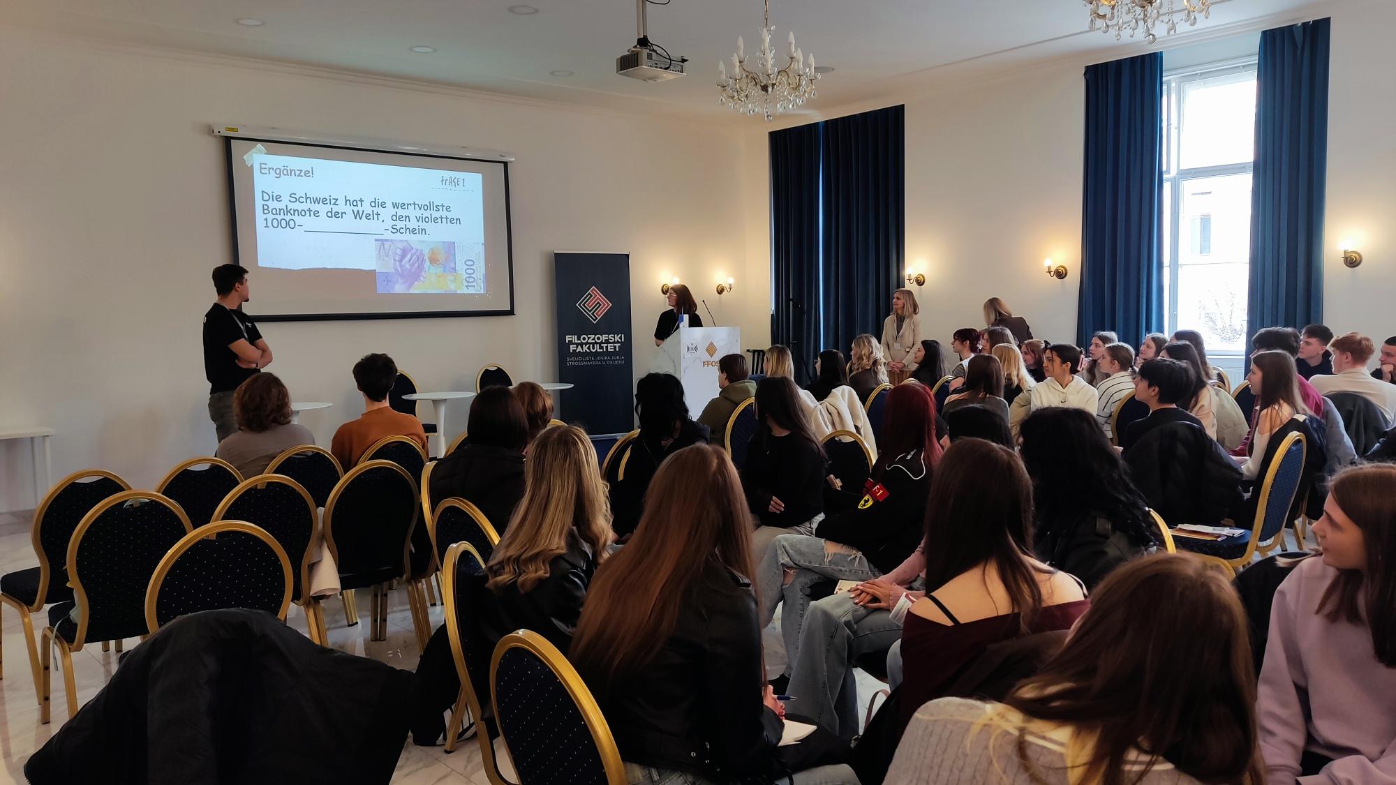 Nakon toga uslijedio je pub kviz o poznavanju zemalja njemačkog govornog područja, koji su na njemačkom jeziku vodili studenti germanistike, a naši su učenici pritom pokazali izvrsno znanje. Po završetku kviza održan je i tzv. okrugli stol, tijekom kojega su se učenici družili sa studentima te imali priliku saznati više o studentskom životu u Osijeku i postaviti pitanja koja ih zanimaju.